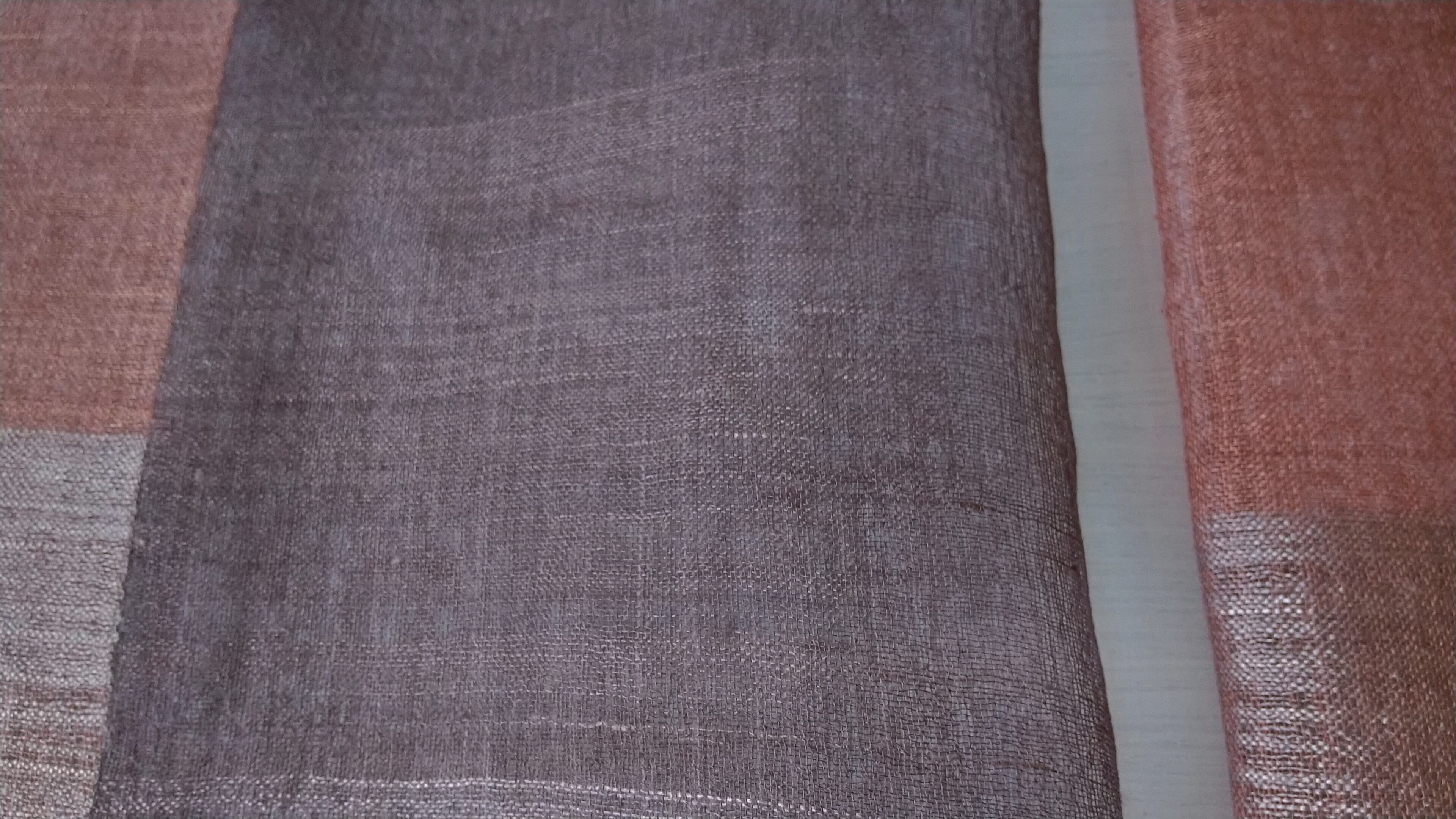枇杷染めの鉄媒染と銅媒染で経糸の二色構成の中に、